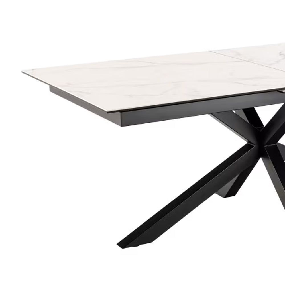 Inspirada en la elegancia de lo simple, esta mesa de comedor extensible transforma cualquier espacio en un punto de encuentro sofisticado. Su cubierta de ceramica en tono blanco con vetas delicadas aporta luminosidad y refinamiento, mientras que su base metalica en negro contrasta con fuerza y estilo. El sistema de extension lateral permite adaptar su tamaño segun la ocasion, siendo perfecta tanto para cenas intimas como para reuniones amplias. Su diseño contemporaneo combina funcionalidad y presencia visual, convirtiendola en una pieza clave para ambientes modernos que buscan armonia entre estetica limpia y practicidad cotidiana.