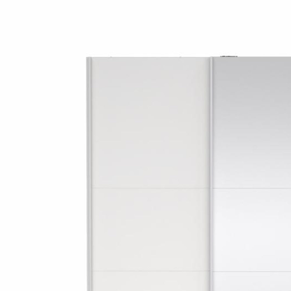 Este moderno closet de folio blanco es la solucion perfecta para espacios contemporaneos. Con dos puertas corredizas, una de ellas incluye un espejo, combina funcionalidad con un estilo sofisticado. Su interior incluye tres gavetas, cuatro entrepaños y dos percheros, ofreciendo un amplio espacio para organizar ropa, zapatos y accesorios. El diseño de las puertas corredizas maximiza el espacio disponible en la habitacion, mientras que el espejo no solo es practico, sino que tambien añade luminosidad y una sensacion de amplitud. Ideal para cualquier dormitorio que busque un toque moderno y eficiente.