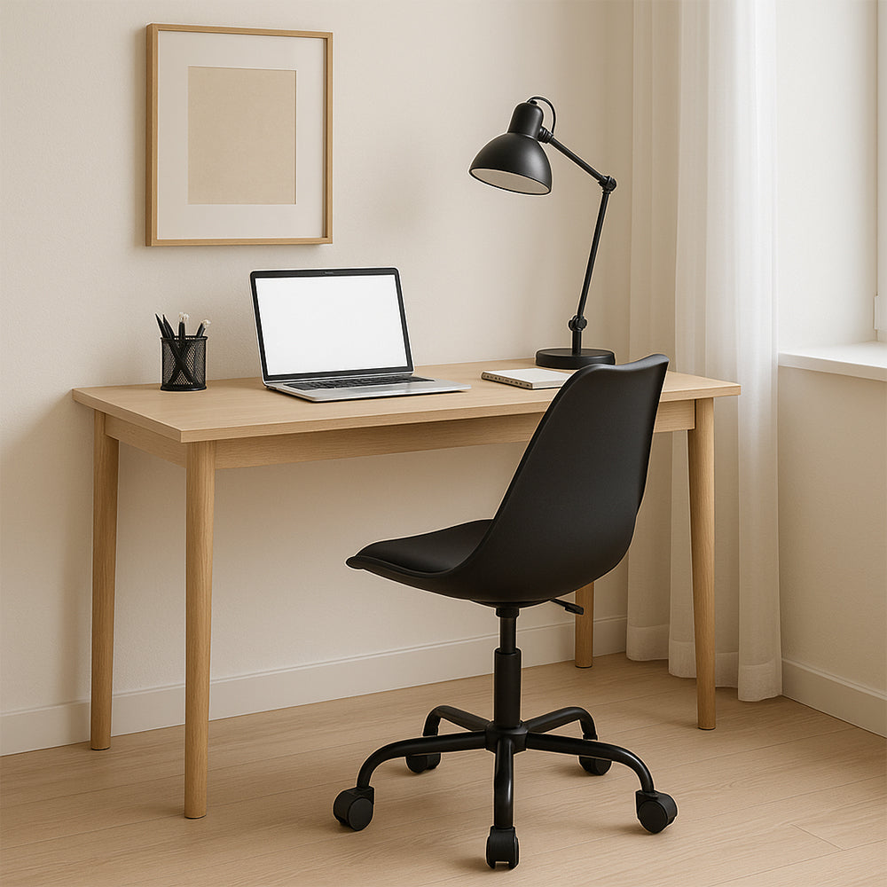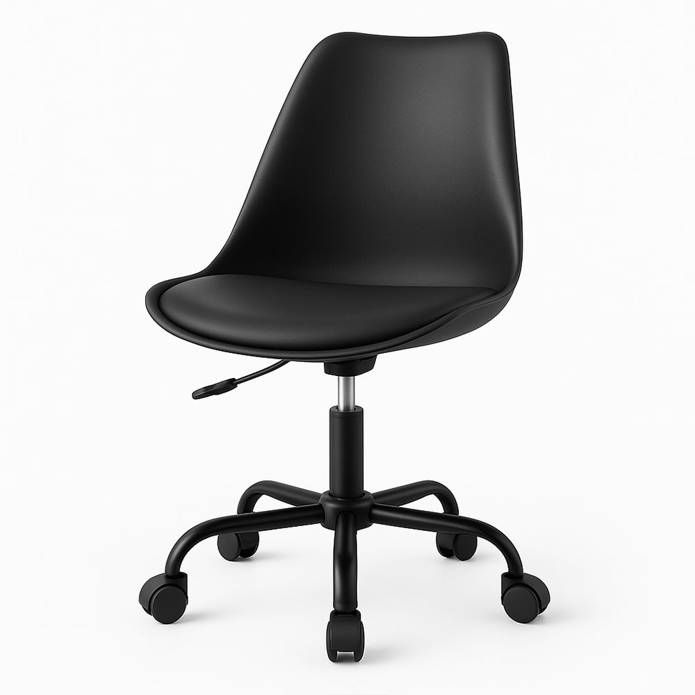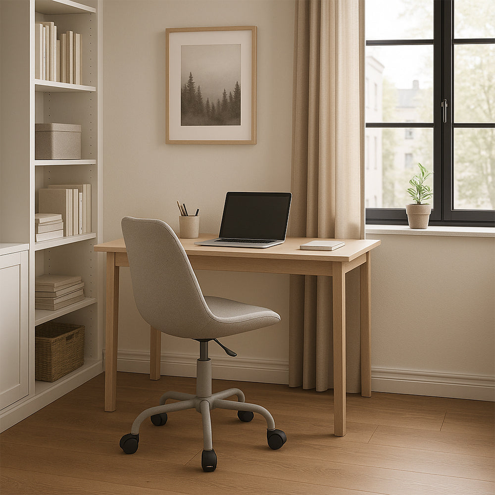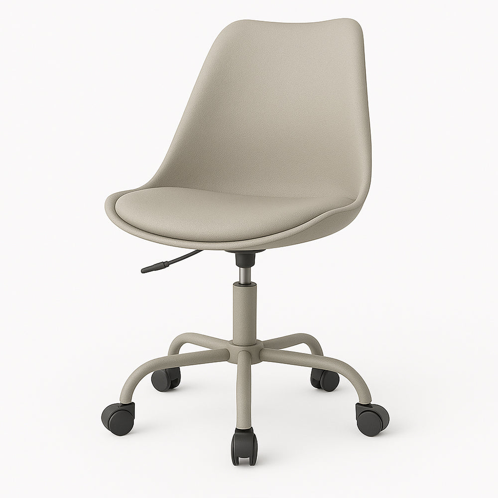 Con una silueta moderna y funcional, esta silla de oficina combina diseño contemporaneo y practicidad para espacios de trabajo actuales. El asiento, elaborado en polipropileno con tapizado en cuero textil gris, ofrece una superficie comoda y de facil mantenimiento. Su base metalica en tono gris agrega estabilidad y un look uniforme, mientras que los rodos de polipropileno negro permiten movilidad fluida sobre diferentes superficies. Ideal para escritorios juveniles, oficinas en casa o zonas de estudio, esta silla es una solucion estilizada que responde a las necesidades de confort y estilo del usuario moderno. Ajuste de altura incluido para mayor ergonomia.