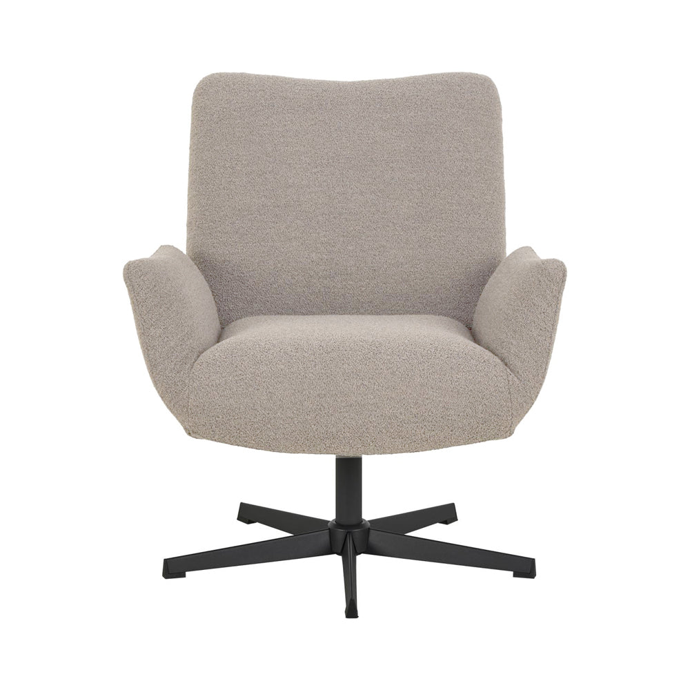 Diseñada para ofrecer comodidad con estilo, esta silla giratoria tapizada en tela Cona cafe es la fusion perfecta entre elegancia y funcionalidad. Su silueta envolvente con brazos integrados proporciona una experiencia acogedora, ideal para largas jornadas de lectura o trabajo. La textura suave de la tela agrega un toque calido, mientras que la base de metal negro aporta estabilidad y un aire moderno e industrial. Su sistema giratorio la convierte en una pieza versatil para oficinas, salas o espacios creativos. Esta silla no solo sigue la tendencia actual del diseño confortable, sino que tambien eleva cualquier ambiente con su presencia contemporanea.