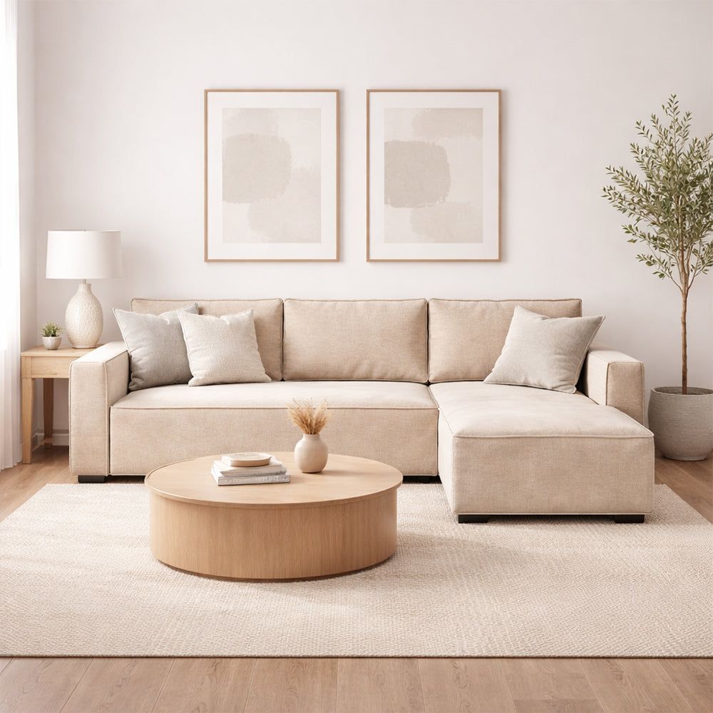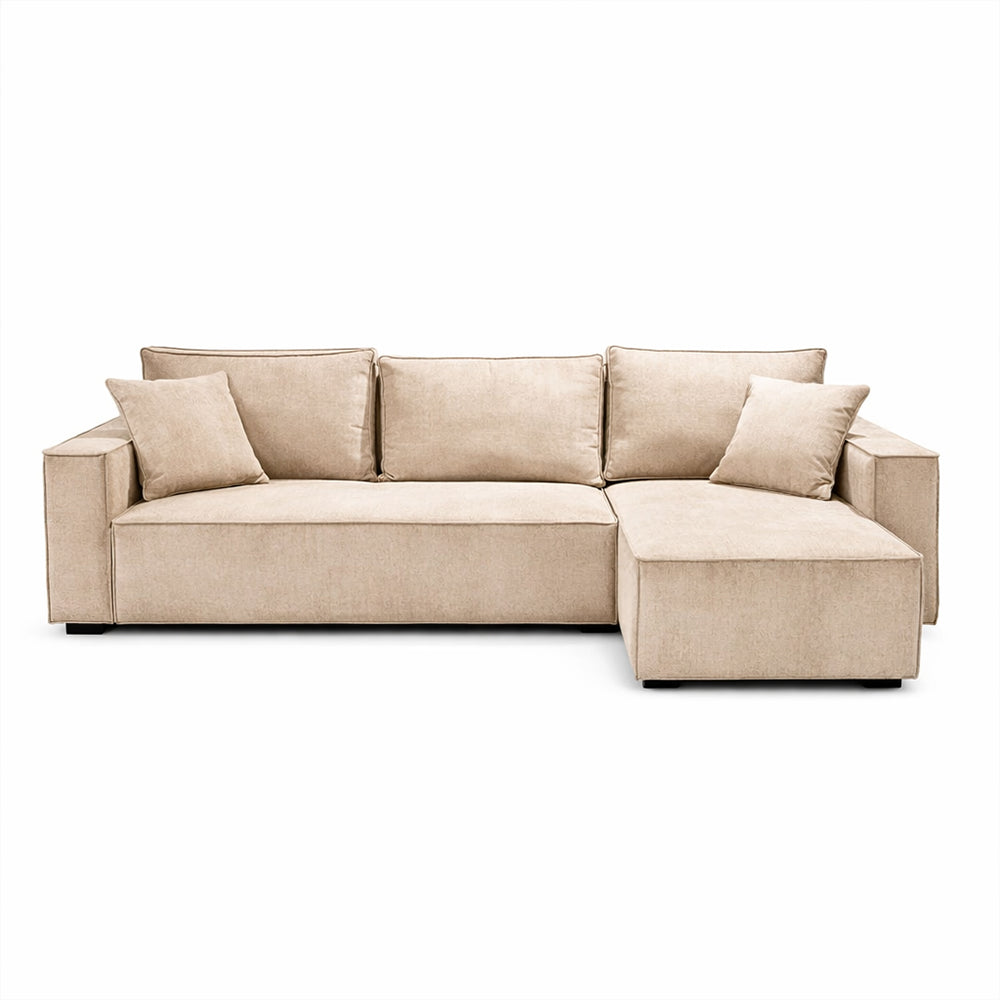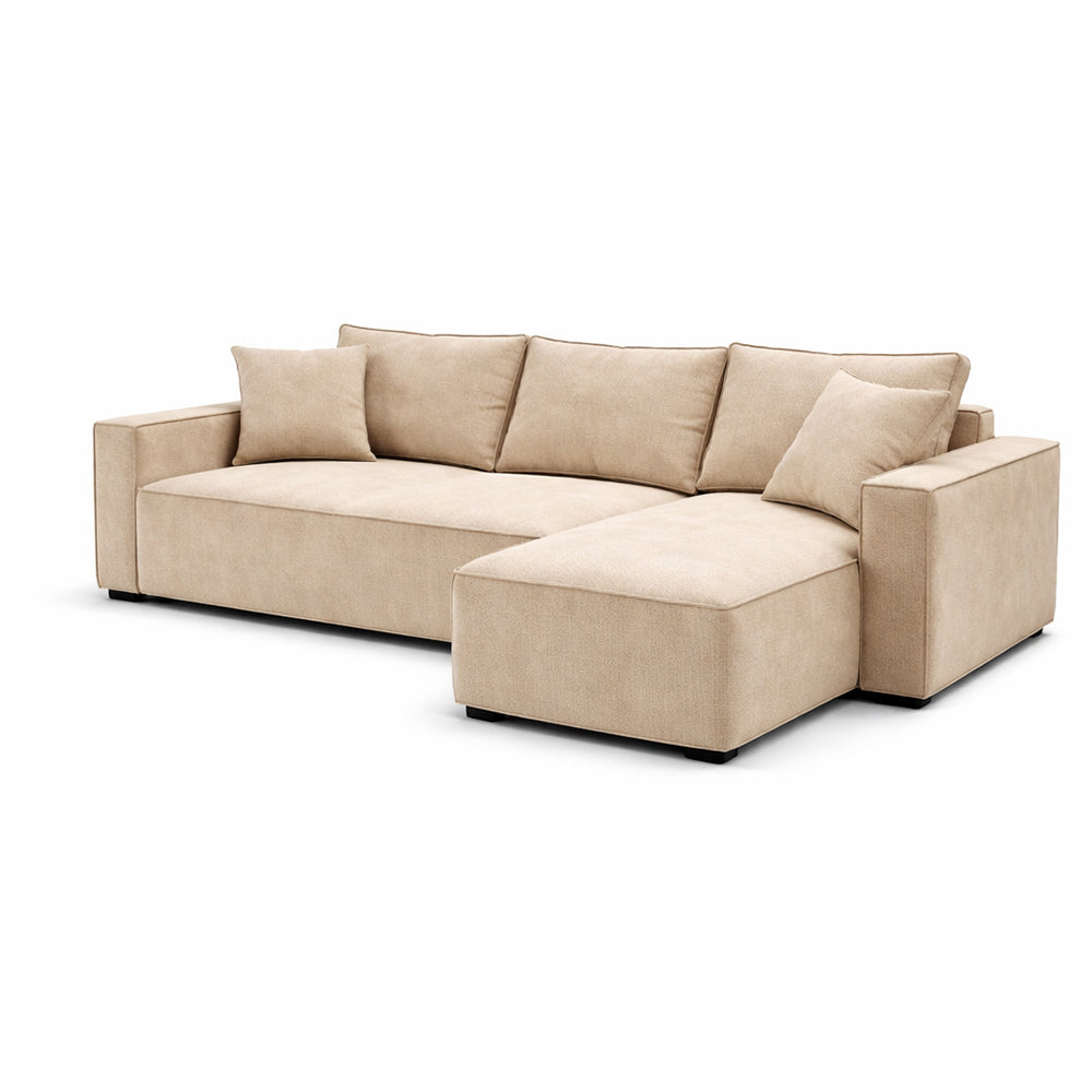 Este sofa chaiselongue destaca por su diseño versatil y contemporaneo, ideal para quienes buscan funcionalidad sin sacrificar estilo. Tapizado en tela Tresor champan o azul, su textura acanalada aporta una estetica moderna y acogedora que esta en plena tendencia. El chaise reversible permite adaptar la distribucion segun el espacio disponible, brindando comodidad y flexibilidad. Cuenta con patas de polipropileno negro que contrastan elegantemente con la tapiceria y aportan estabilidad. Su estructura de madera garantiza durabilidad, mientras que su capacidad para transformarse en cama lo convierte en una solucion practica para salas multifuncionales. Perfecto para espacios actuales que combinan confort y diseño.