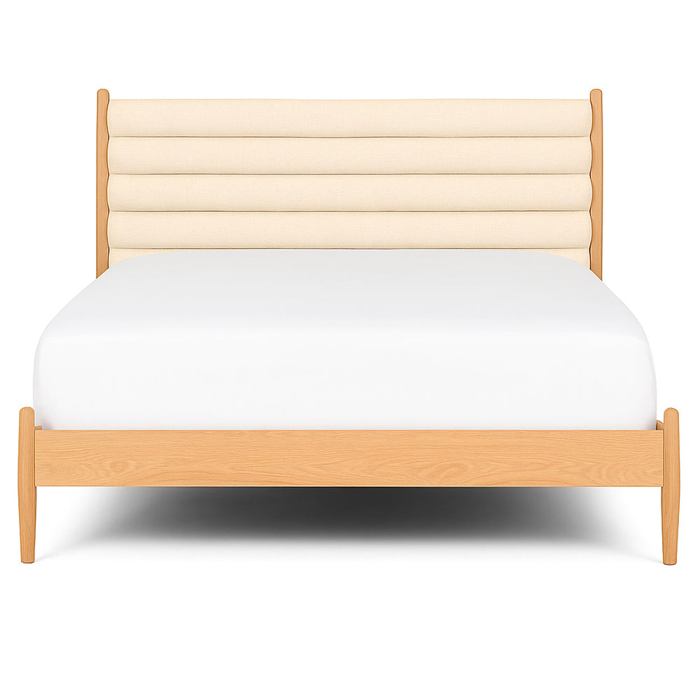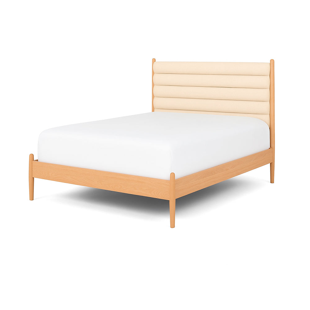 Descubre el equilibrio perfecto entre elegancia y funcionalidad con esta cama queen tapizada en tela color crema, un tono cálido y versátil que aporta luminosidad y serenidad al espacio. Su diseño de líneas redondeadas y respaldo con detalle horizontal realza su estilo actual con un sutil guiño a lo clásico. La base en madera tono natural complementa a la perfección, resaltando la belleza de los materiales y el trabajo artesanal. Ideal para dormitorios modernos o escandinavos, esta cama es una pieza central que transforma el ambiente en un refugio acogedor, sofisticado y en sintonía con las ultimas tendencias en interiorismo.